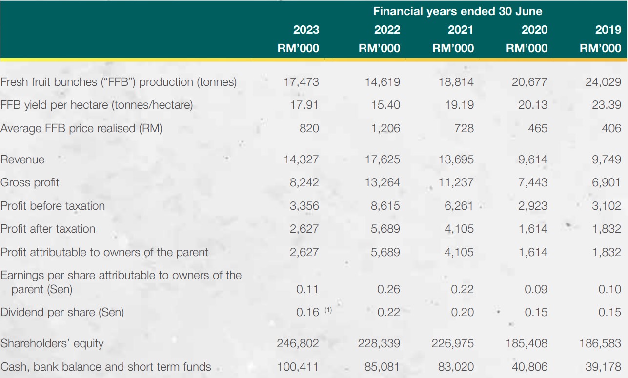 (1) First and final dividend of 0.16 sen per ordinary share of Matang Berhad in respect of financial year ended 30 June 2023 is subject to the approval of the shareholders of Matang in the upcoming Annual General Meeting.